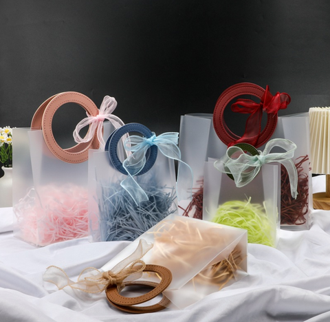 Clear Gift Bag with Die Cut Handle Round square Transparent PVC Reusable Gift Wrapping Bag Treat Goody Party Favor Plastic Bag